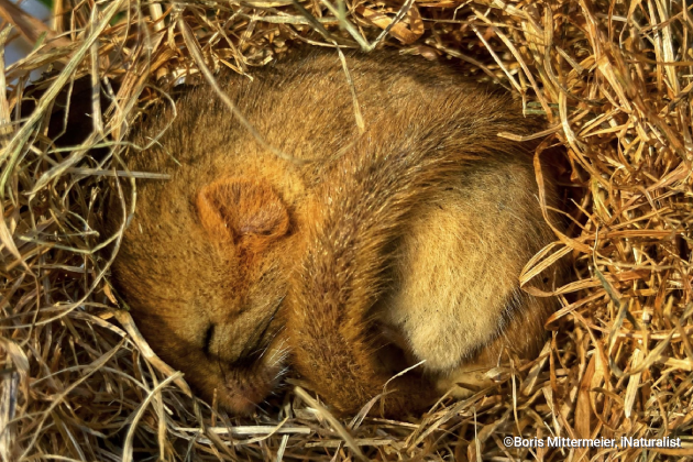 가을에 살을 찌운 유럽겨울잠쥐는 10월에서 5월 사이, 한 해의 약 7개월가량을 숲 바닥의 낙엽 아래나 울타리 밑동에 둥지를 틀고 동면합니다. 날씨가 추워지면 나무에서 땅으로 내려와 테니스 공만 한 크기의 촘촘한 둥지를 만드는 데, 이 둥지 안에서 몸을 웅크리고 꼬리로 얼굴과 몸을 감싸 체온을 유지한다고 해요. 이 귀여운 설치류는 코를 골기도 한다네요😆 |