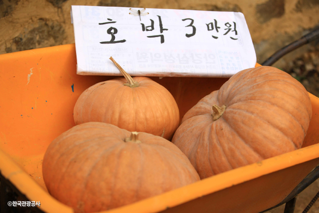 늙은 호박은 버릴 것이 하나도 없어요. 커다란 잎으로는 쌈을 싸 먹고, 노란 호박 꽃엔 다진 고기와 야채 속을 넣어 호박만두로 먹는답니다. 알찬 호박 속은 죽·떡·범벅으로 먹고, 전으로도 부쳐 먹어요. 호박씨는 잘 말려 뒀다가 간식으로 먹지요. 심지어 꼭지는 말려서 가루로 만들어 벌꿀과 함께 섞어 먹으면 감기 예방과 고질적인 기침에도 효과가 있다고 하니, 정말 알차게 다 먹을 수 있죠🍴